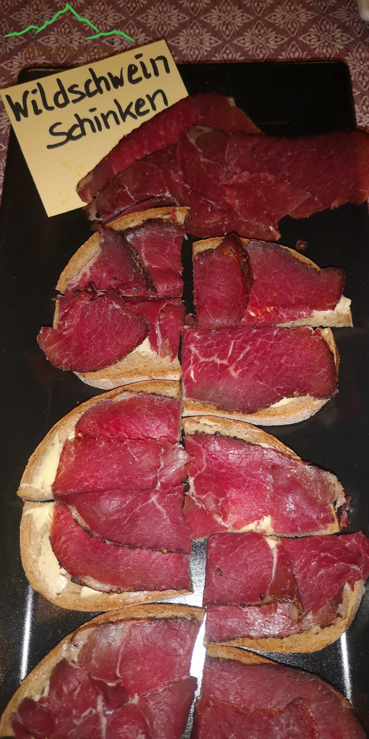 1. Historic Blanc Terroirs al Limit 2018 Priorat mit Wildschweinschinken (mit und ohne Sennbutter) und Wildschweinbeisser