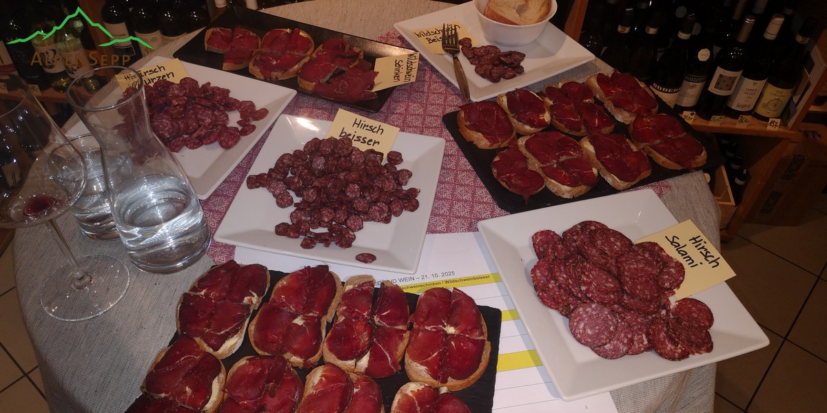 Am 21. Oktober 2025 fand in der renommierten Vinothek Bruvino in Dornbirn eine außergewöhnliche Verkostung statt: “Wein und Wild – ein Balanceakt“, bei dem wir aktiv mit unseren Wildprodukten mitwirken und präsentieren durften.